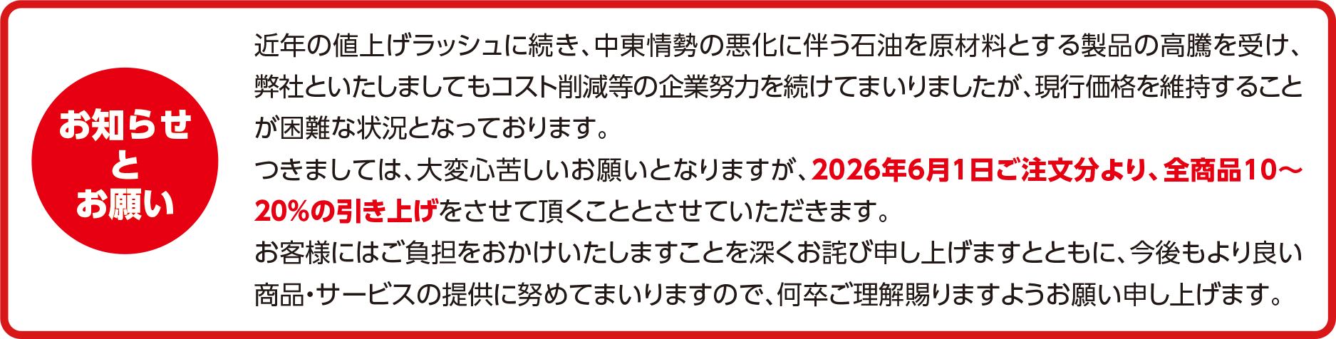 パネル発送料金改定に関するお知らせ